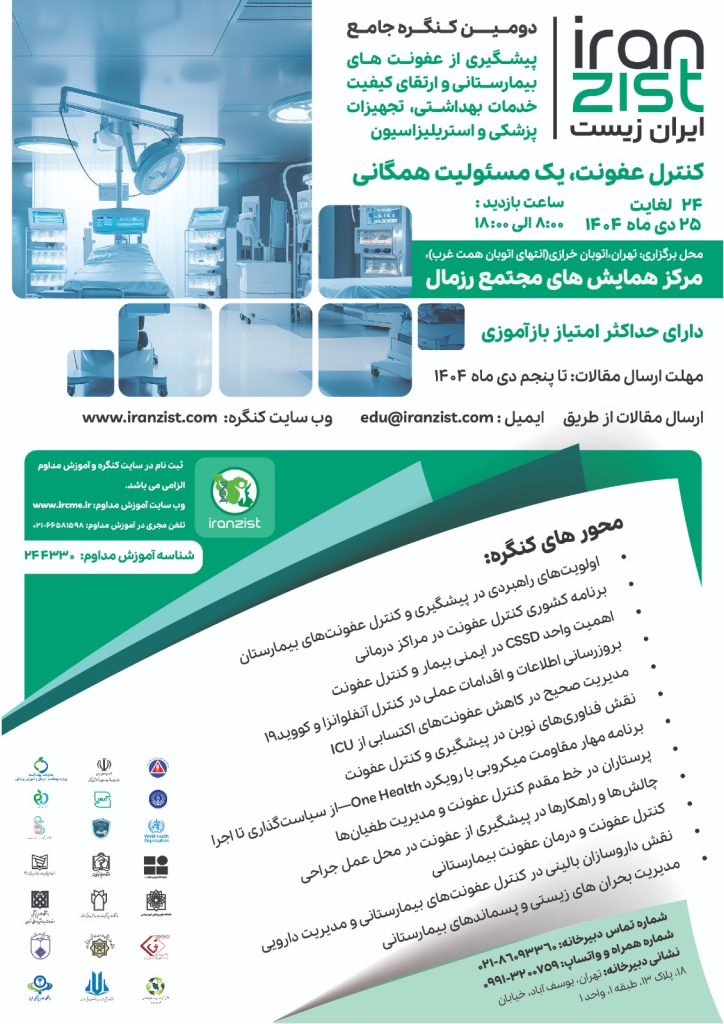 با افتخار اعلام میشود که دومین کنگره جامع پیشگیری از عفونتهای بیمارستانی و ارتقای کیفیت خدمات بهداشتی، تجهیزات پزشکی و استریلیزاسیون در تاریخ 24 تا 25 دیماه 1404 در تهران، اتوبان خرازی (انتهای اتوبان همت غرب)،مرکز همایشهای مجتمع رزمال برگزار خواهد شد. این رویداد علمی فرصتی کمنظیر برای گردهمایی متخصصان، پژوهشگران و دانشجویان حوزههای مرتبط است تا با تبادل تجربیات و ارائه جدیدترین یافتههای علمی، گامی مؤثر در راستای پیشگیری و کنترل عفونتهای بیمارستانی برداشته شود.