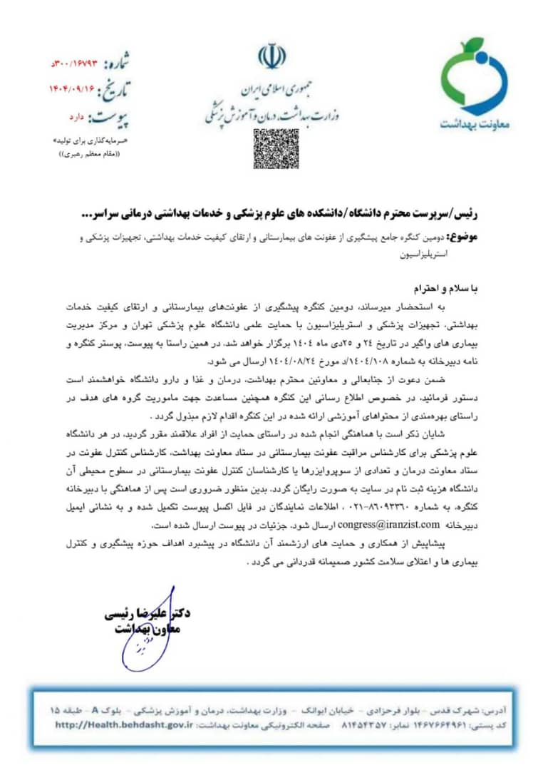 دومین کنگره جامع پیشگیری از عفونتهای بیمارستانی و ارتقا کیفیت خدمات بهداشتی، تجهیزات پزشکی و استریلیزاسیون
